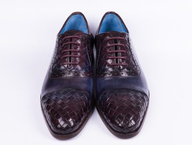 - Hakiki örme deri mavi ve bordo renge renge elle boyanmış