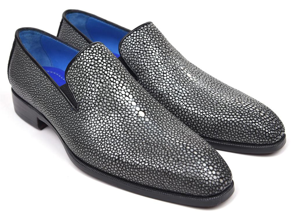 Hakiki Örme Deri El Boyaması Siyah & Açık Gri Loafer Ayakkabı