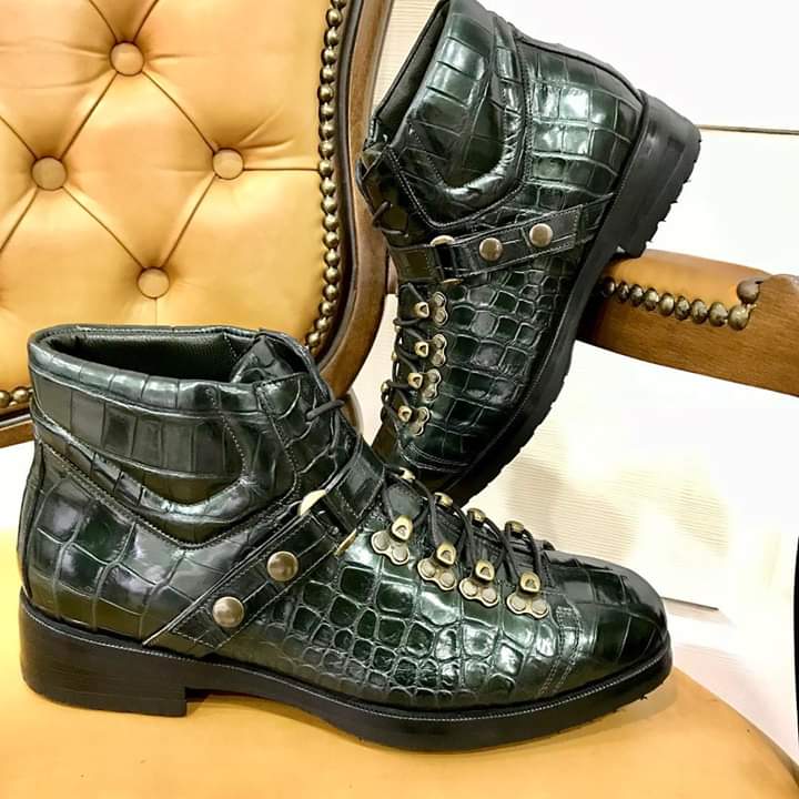 Hakiki Timsah Derisi Koyu Yeşil El Yapımı Spor Ayakkabı