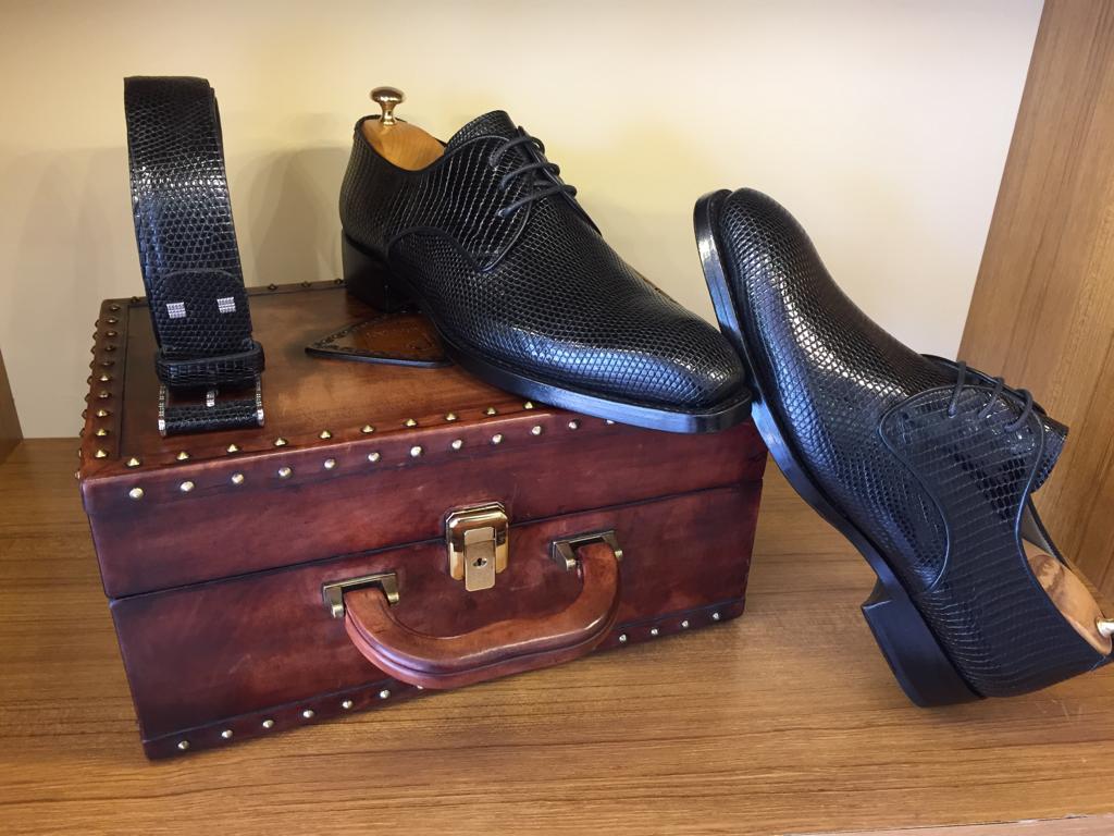 Hakiki İguana & Piton Siyah & Naturel El Yapımı Spor Ayakkabı