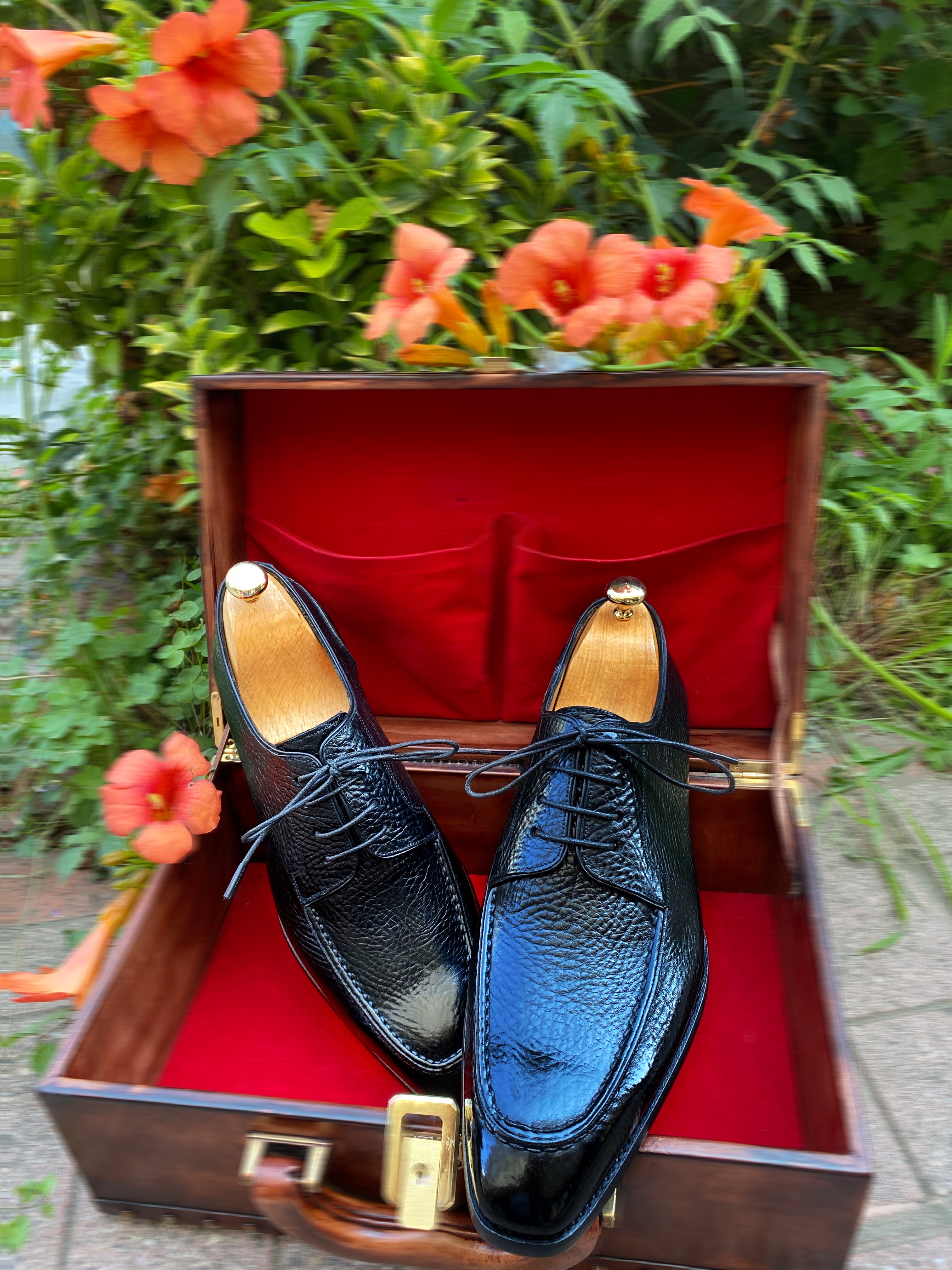 Hakiki Timsah ve Dana Derisi Duble Tabanlı Antrasit Siyah Oxford Ayakkabı
