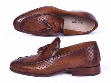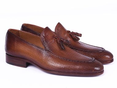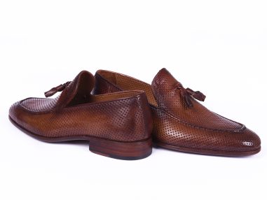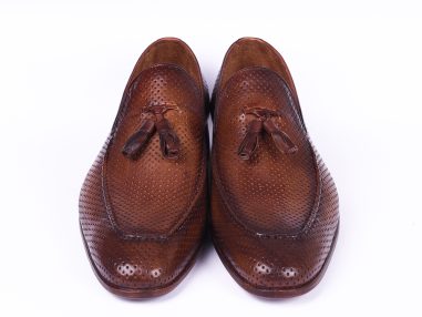 - Brown perforated leather upper