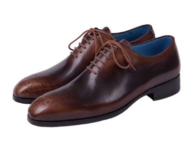 - Madellion toe hand-painted calfskin upper