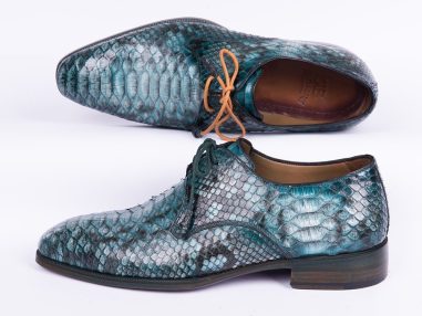 - Hand-painted genuine python leather blue upper