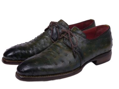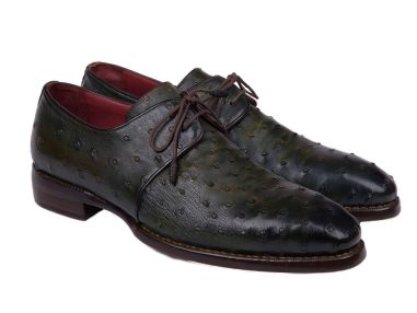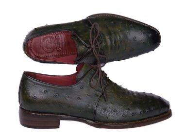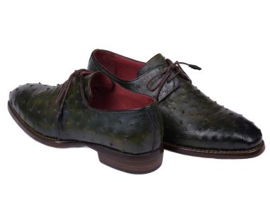 - Plain toe & Hand-painted green genuine ostrich leather upper