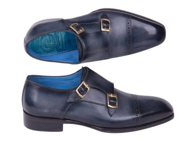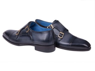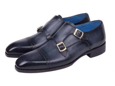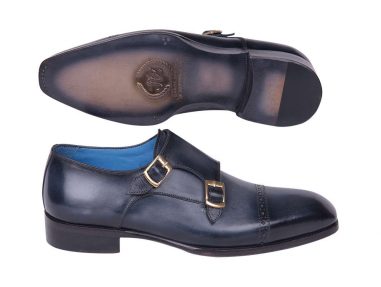 Hakiki Deri Mavi&Siyah Hand-Welted Çift Tokalı Klasik Ayakkabı