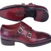 Hakiki Deri Bordo & Mor Hand Welted Çift Tokalı Klasik Ayakkabı
