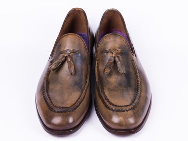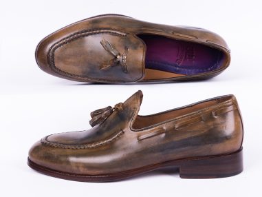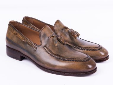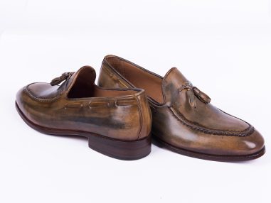 - Hakiki deri yeşil ve camel renge elle boyanmış