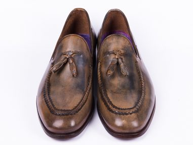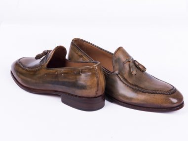 - Hakiki deri yeşil ve camel renge elle boyanmış