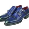 Hakiki Deri Mavi&Siyah Hand-Welted Çift Tokalı Klasik Ayakkabı