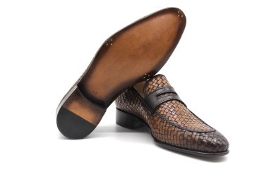 - Hakiki örme deri camel & kahve el boyaması