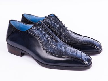 - Hakiki devekuşu ve dana derisi el boyaması lacivert saya