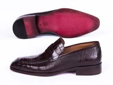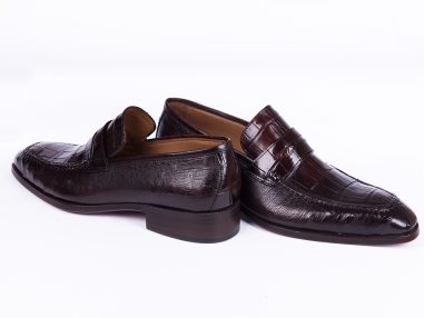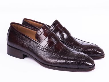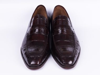 - Hakiki timsah ve devekuşu derisi koyu bordo renge elle boyanmış